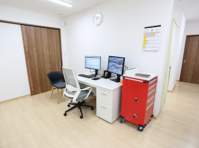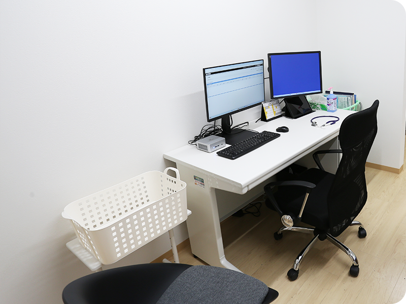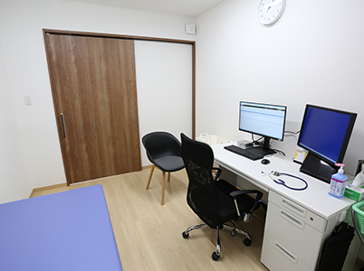 当クリニックのメインの診察室です。順番がまいりましたらお呼びしますので、「診察室1」と書かれた引き戸より中にお入りください。